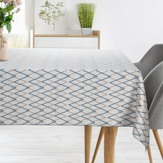 Obrus z nadrukowanym wzorem szerokość: 160 cm. długość: 240 cm. kolor: naturalny. Skład: 65% poliester. 25% bawełna. 10% len