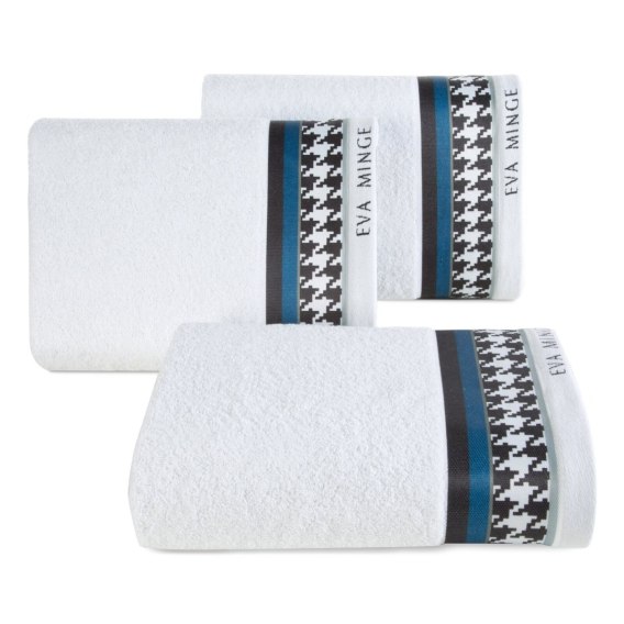 Ręcznik z drukowaną bordiurą szerokość: 30 cm. długość: 50 cm. kolor: biały. Gramatura: 485 GSM. Skład: 100% bawełna: część ozdobna: 94% bawełna. 6% poliester