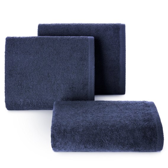Jednokolorowy. gładki ręcznik kąpielowy z miękkiej tkaniny bawełnianej o splocie frotte. Lekki. trwały i bardzo chłonny. Kolory odporne na częste pranie. szerokość: 50 cm. długość: 100 cm. kolor: granatowy. Gramatura: 400 GSM. Skład: 100% bawełna