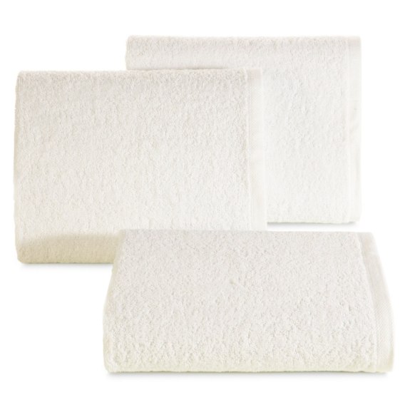 Jednokolorowy. gładki ręcznik kąpielowy z miękkiej tkaniny bawełnianej o splocie frotte. Lekki. trwały i bardzo chłonny. Kolory odporne na częste pranie. szerokość: 50 cm. długość: 100 cm. kolor: kremowy. Gramatura: 500 GSM. Skład: 100% bawełna