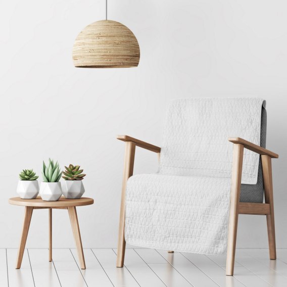 Narzuta jednokolorowa. wykonana techniką hot press szerokość: 70 cm. długość: 160 cm. kolor: biały. Gramatura: 70 GSM. Skład: 100% poliester