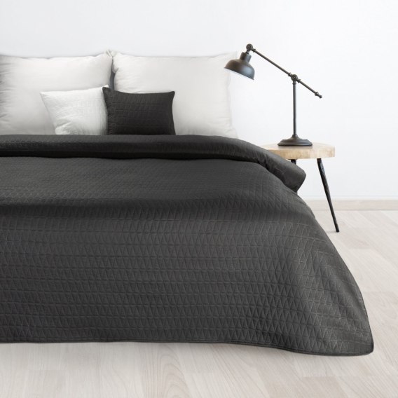 Narzuta jednokolorowa. wykonana techniką hot press szerokość: 170 cm. długość: 210 cm. kolor: czarny. Gramatura: 70 GSM. Skład: 100% poliester
