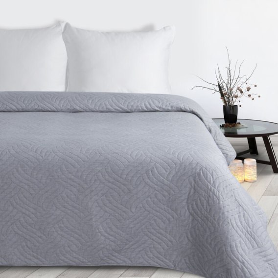 Dekoracyjna narzuta na łóżko, wykonana techniką typu "hotpress" szerokość: 170 cm, długość: 210 cm, kolor: srebrny, Gramatura: 100+100+70 GSM, Skład: 100% poliester