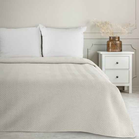 Narzuta hot press imitująca len szerokość: 220 cm. długość: 240 cm. kolor: kremowy. Gramatura: 185 GSM