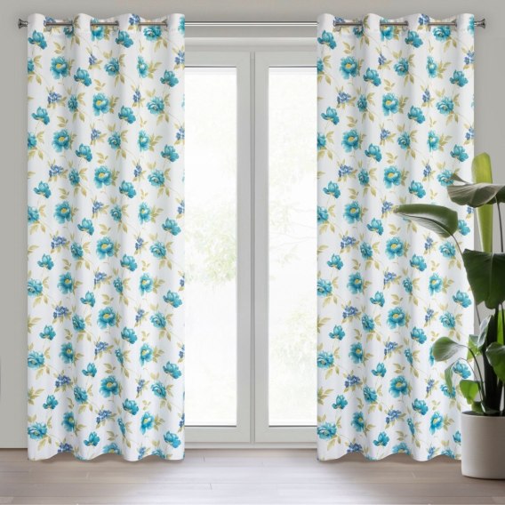 Zasłona gotowa z nadrukiem szerokość: 140 cm. długość: 250 cm. kolor: biały. Gramatura: 75 GSM. Skład: 100% poliester