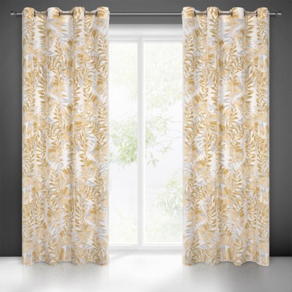 Zasłona gotowa z motywem roślinnym szerokość: 140 cm. długość: 250 cm. kolor: naturalny. Gramatura: 120 GSM. Skład: 100% poliester