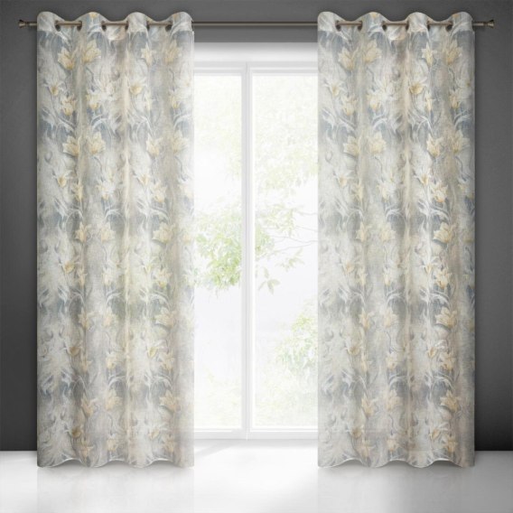 Klasyczna zasłona z tkaniny o strukturze płótna zdobiona pastelowym nadrukiem kwiatów ogrodowych. Średni stopień zaciemnienia. Tkanina łatwa w prasowaniu. szerokość: 140 cm. długość: 250 cm. kolor: popielaty. Gramatura: 130 GSM. Skład: 100% poliester