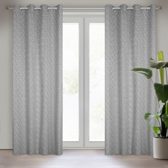 Zasłona gotowa zdobiona supełkami. w stylu eko szerokość: 140 cm. długość: 260 cm. kolor: stalowy. Gramatura: 250 GSM. Skład: 100% poliester