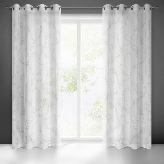 Klasyczna zasłona z tkaniny o strukturze płótna zdobiona pastelowym nadrukiem kwiatów ogrodowych. Średni stopień zaciemnienia. Tkanina łatwa w prasowaniu. szerokość: 140 cm. długość: 250 cm. kolor: biały. Gramatura: 110 GSM. Skład: 100% poliester