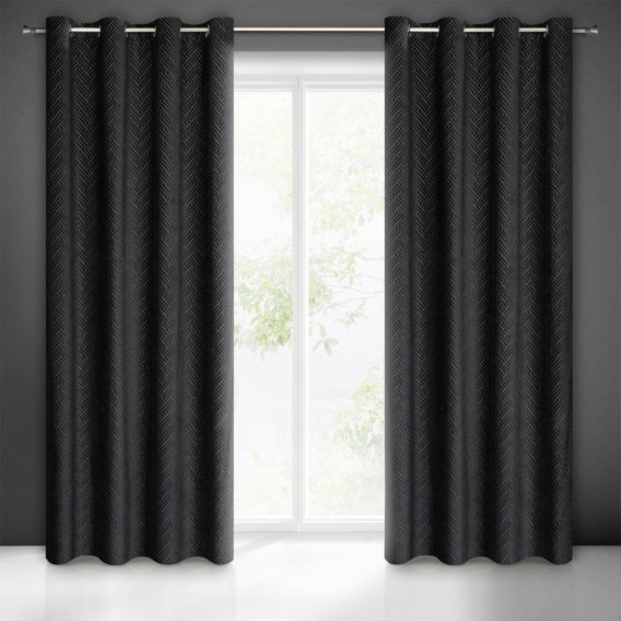 Zasłona z welwetu żakardowego z geometrycznym wzorem szerokość: 140 cm. długość: 250 cm. kolor: czarny. Gramatura: 320 GSM. Skład: 100% poliester