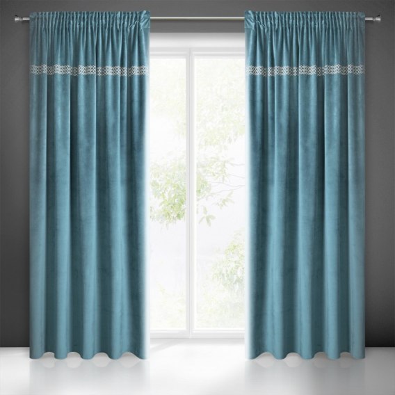 Zasłona welwetowa ze wzorem z szampańskich dżetów szerokość: 140 cm. długość: 270 cm. kolor: ciemnoturkusowy. Gramatura: 200 GSM. Skład: 100% poliester