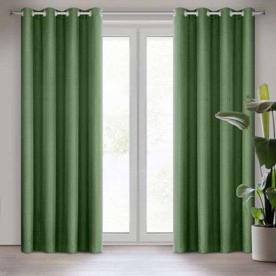 Piękna. jednokolorowa zasłona z miękkiej tkaniny o matowym wykończeniu i satynowym splocie. Uniwersalna dekoracja do każdego wnętrza. Łatwa w prasowaniu. szerokość: 140 cm. długość: 250 cm. kolor: ciemnozielony. Gramatura: 140 GSM. Skład: 100% poliester