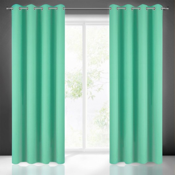 Piękna. jednokolorowa zasłona z miękkiej tkaniny o matowym wykończeniu i satynowym splocie. Uniwersalna dekoracja do każdego wnętrza. Łatwa w prasowaniu. szerokość: 140 cm. długość: 250 cm. kolor: miętowy. Gramatura: 140 GSM. Skład: 100% poliester
